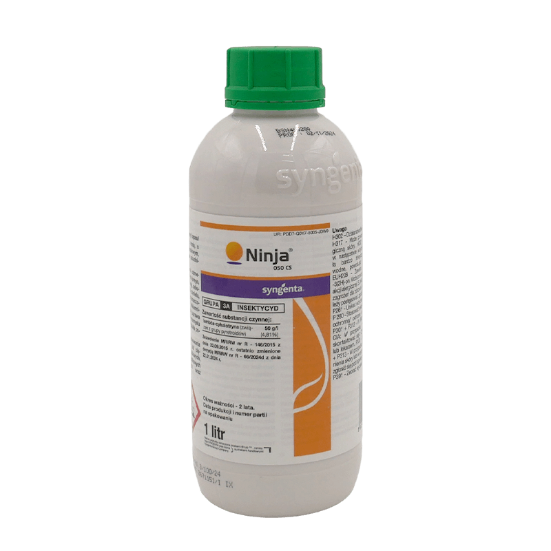 Ninja 050 CS to insektycyd o działaniu kontaktowym i żołądkowym, przeznaczony do zwalczania najważniejszych szkodników w uprawach rolniczych, warzywniczych oraz sadowniczych. Zawiera substancję aktywną lambda-cyhalotrynę, należącą do grupy syntetycznych pyretroidów, która działa na układ nerwowy owadów, powodując ich szybkie porażenie. Preparat wykazuje bardzo szybki efekt działania – śmierć szkodników następuje w ciągu kilku minut od kontaktu z rośliną. Ninja 050 CS skutecznie zwalcza mszyce, skrzydlaki, wciornastki, rolnice, gąsienice motyli, stonkę ziemniaczaną, słodyszka rzepakowego i inne groźne gatunki. Preparat można stosować zarówno profilaktycznie, jak i interwencyjnie, przy dużym nasileniu presji szkodników. Technologia mikroenkapsulacji (CS) zapewnia stopniowe uwalnianie substancji aktywnej, zwiększając trwałość efektu i odporność na zmywanie.