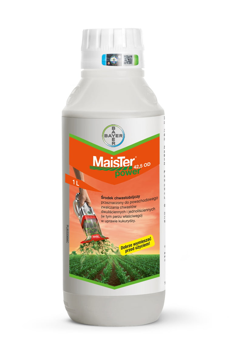 Maister® Power 42,5 OD to systemiczny herbicyd nalistny przeznaczony do powschodowego zwalczania chwastów jedno- i dwuliściennych w kukurydzy. Zawiera trzy substancje czynne: foramsulfuron, jodosulfuron metylosodowy oraz tienkarbazon metylu – inhibitory syntazy ALS odpowiedzialnej za biosyntezę aminokwasów. Środek działa szybko i skutecznie, powodując zahamowanie wzrostu, skręcenie i przebarwienie liści, karłowacenie i w efekcie zamieranie chwastów. Maister® Power 42,5 OD zwalcza m.in. chwastnicę jednostronną, fiołka polnego, komosę białą, marunę bezwonną, przytulię czepną, ostrożeń polny, perz właściwy, psiankę czarną, szarłat szorstki i rdest powojowaty. Efekty działania są widoczne po około 14 dniach od zabiegu. Dzięki formulacji olejowej (OD) preparat dobrze przylega do liści, wykazując odporność na zmywanie już po 2 godzinach od oprysku.