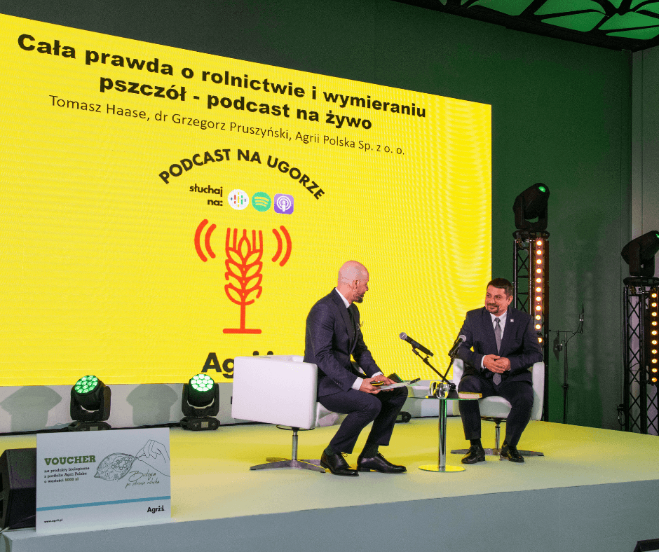 Tomasz Haase prowadzący rozmawiał z naszym specjalistą ds. Produktów Biologicznych w Agrii Polska Grzegorz Pruszyńskim na tematy istotne dla środowiska m.in. temat pszczół. Podcast spotkał się z rewelacyjnym odbiorem zasiadającej publiczności.