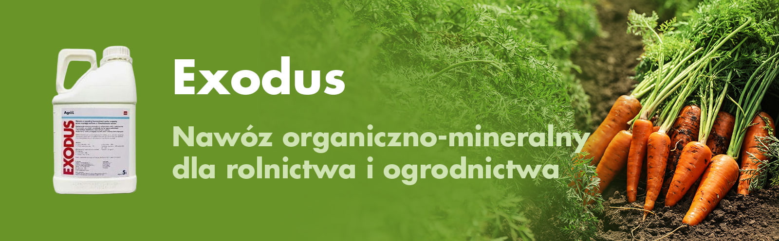 Nawóz organiczno-mineralny Exodus ma szerokie spektrum zastosowania, jest dedykowany do upraw rolniczych i warzyw. Szczególnie zalecany jest w uprawach, takich jak: ziemniak, marchew, pietruszka, seler, czosnek, cebula. Jak działa nawóz organiczno-mineralny Exodus? Nawóz organiczno-mineralny Exodus to preparat poprawiający warunki rozwoju systemu korzeniowego upraw rolniczych i warzyw, niwelujący skutki uszkodzeń powodowanych przez nicienie. Działanie nawozu organiczno-mineralnego Exodus opiera się na naturalnym wsparciu procesów życiowych roślin. Nawóz organiczno-mienralny Exodus pobudza je do wzrostu oraz zapewnia ich właściwe odżywienie. W efekcie rośliny są stymulowane do lepszego pobierania i efektywniejszej akumulacji składników mineralnych, które znajdują się w glebie.Jakie substancje odżywcze zawiera nawóz organiczno-mineralny Exodus?