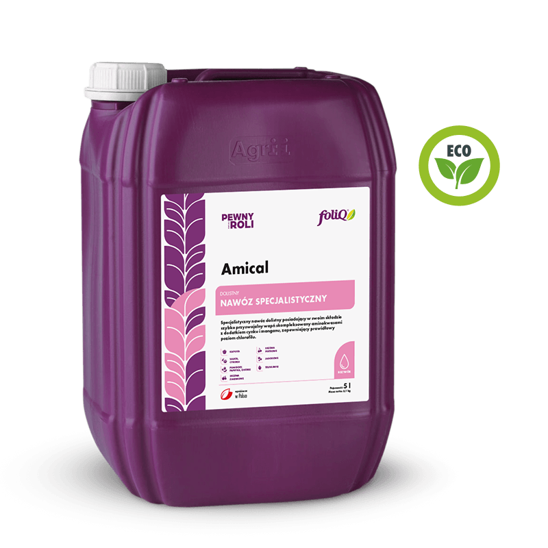 Jakie substancje odżywcze zawiera nawóz dolistny foliQ® Amical? FoliQ® Amical to nawóz wapniowy z manganem i cynkiem, wzbogacony aminokwasami.